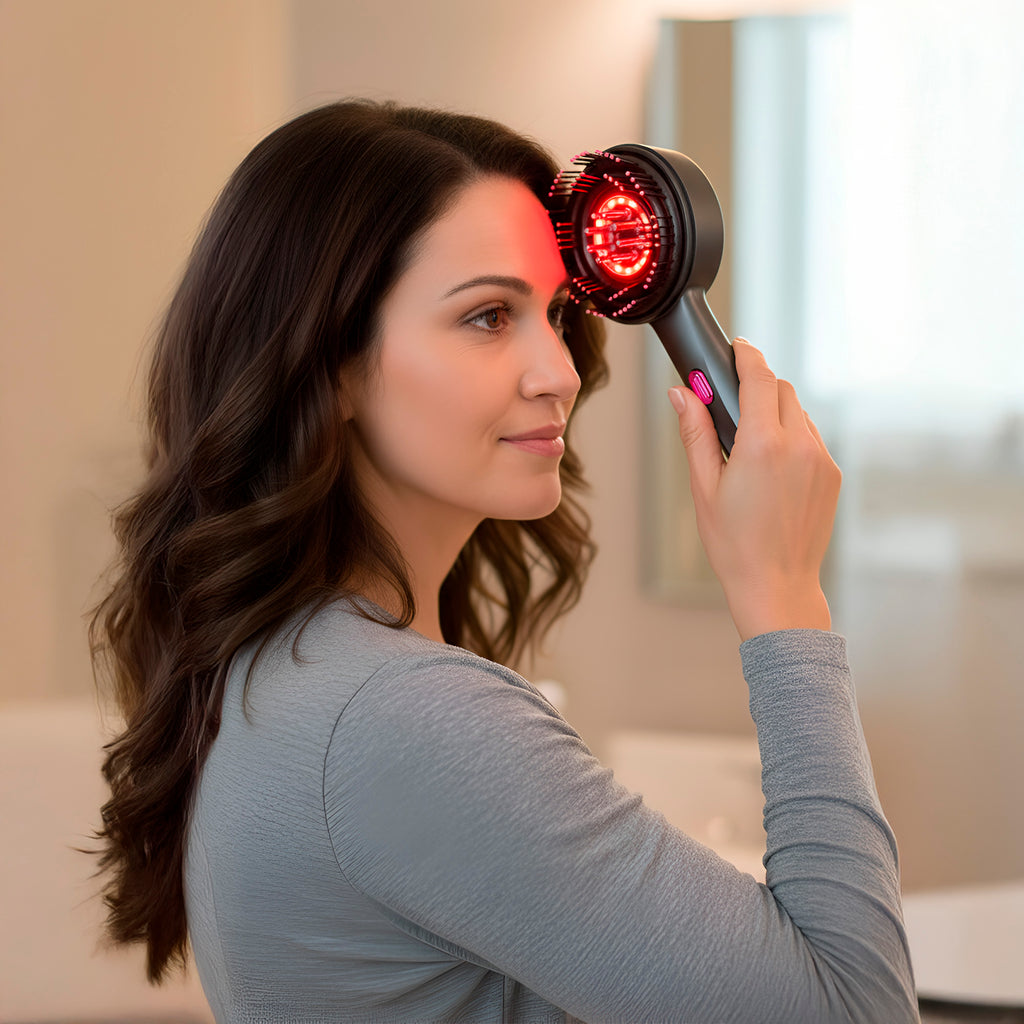• Red & Near-Infrared LED Therapy – Helps stimulate follicles, support natural hair growth, and rejuvenate the scalp.